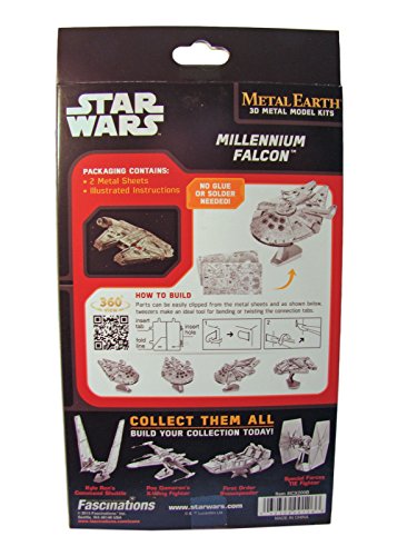 - Feature : Millennium Falcon ICX200B / Larger Than the Regular Metal Earth Series Kit! / Assembly Required - Approximate Finished Dimensions: 4.25" L x 3" W x 2.75" H / Includes 2 Metal Sheets and Illustrated Instructions / Ages 14+