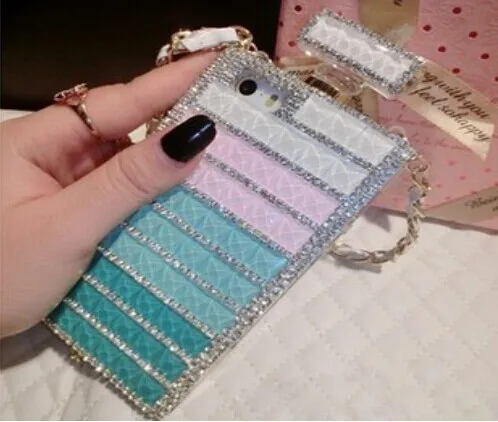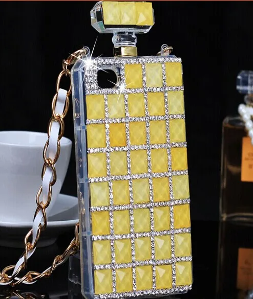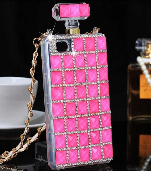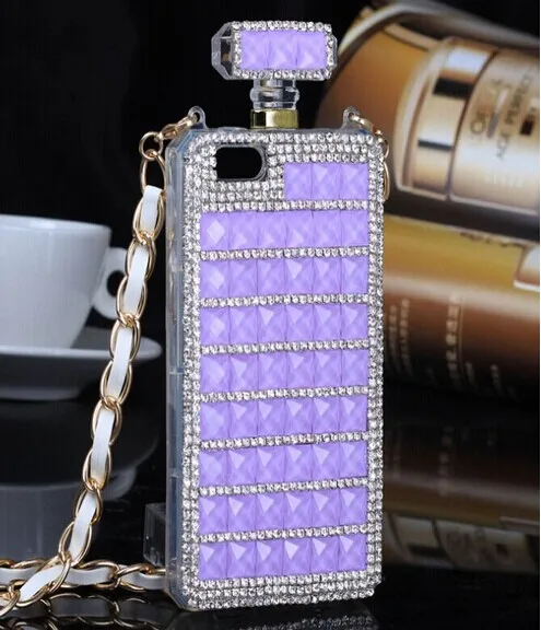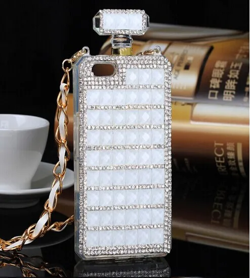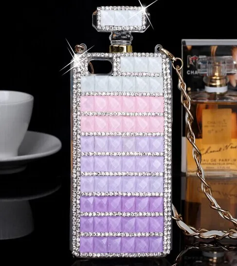 高級ブリンブリンダイヤモンドrhinestonperfumeボトルケースソフトtpuカバーのためのiphone 7 7プラス6 6 sプラス5 5 s seでストラップチェーンストラップ電話バッグ