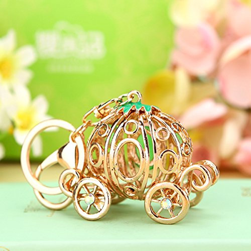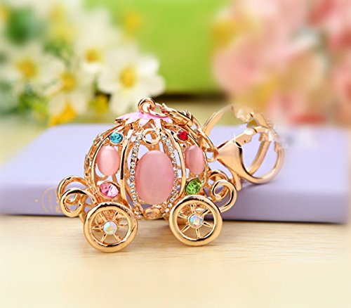 Glamor Hollow Design Opal pumpkin carriage key chain Cinderella Charms women Car Trinket Female's gift key ring Key Holder key fob bag fashion accessories (Pink)