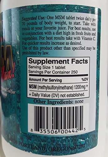 Each tablet contains 1200 mg of pure MSM, with no additives