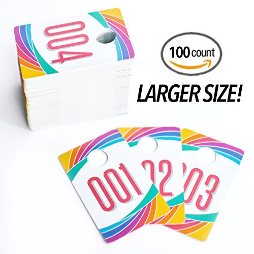 -. Binding : Kitchen -. Brand : Clotilde Tags -. EAN : 0643907990007 -. Feature : LARGER SIZE - These tags are the new and improved larger size measuring at 85 × 54 mm which is the exact size of a credit card, double the size of others! These larger size tags give perfect visibility of the numbers during live sales. Tags that are half this size are tiny and very difficult to see. In addition, our numbers are designed larger and more visible than on other tags. / 3 BONUS BLANK REUSABLE TAGS - In case of loss, these extra blank tags are a lifesaver. Write on them with a sharpie, or to reuse over and over again use a dry erase marker! / DURABLE TAGS MADE OF PLASTIC - These are durable and made to withstand reuse. The high quality print will not rub off and is bright and clear. / BETTER AND BRIGHTER DESIGN - We have improved on the tags that have an outdated and dull design. These tags have a professional and commercial feel to them and are in line with branding of the clothing. / COMES DELIVERED IN STURDY PERFECTLY FITTED CARDBOARD BOX - Other companies ship their tags in a plastic bag that gets thrown out later. Our cardboard box was specifically sized for the tags to protect and hold the cards in place during shipment. The box is a good place to store the cards at the end of the day. -. IsAutographed : 0 -. Label : Clotilde Shop -. Manufacturer : Clotilde Shop -. PackageQuantity : 1 -. ProductGroup : Home -. ProductTypeName : HOME -. Publisher : Clotilde Shop -. Studio : Clotilde Shop -. Title : Live Sale Numbered Hanger Tags | LARGE SIZE with Reverse Mirror Image on the Back Side | 100 pieces (1-100) -. UPC : 643907990007