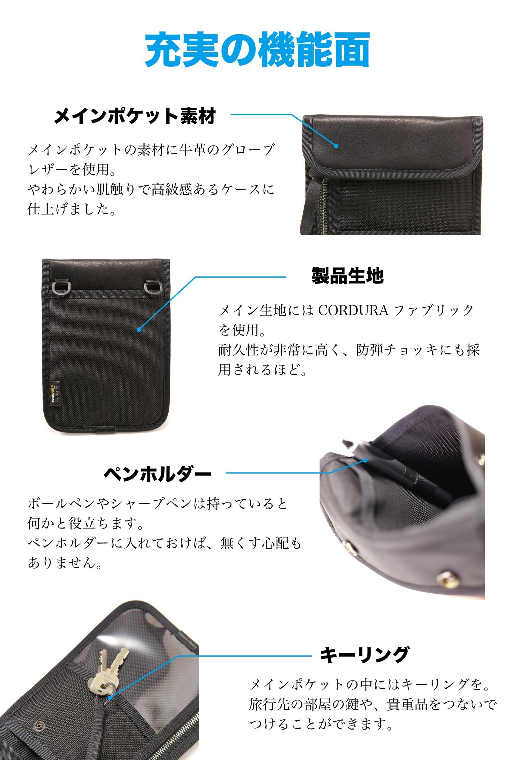 We can carry various cards such as passport and credit, cash and air tickets easily.