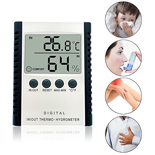 Features: ★ Brand: soled ★ Item Weight: 0.209 Pound ★ Power: 1 x AAA battery ★ Dimensions: 98mm*75mm*19mm/3.86inch*2.95inch*0.75inch ★ Color: Silver and grey ★ Temperature range: a. Inside temperature: -10℃~50℃ ( 14℉ ~ 122℉) b. Outside temperature: -50℃~70℃ (-58℉ ~ 158℉) ★ Measuring humidity range: 10%RH~ 99%RH ★ Humidity accuracy: ±5% ★ Temperature accuracy: /-1℃( /-2℉) ★ Resolution: 0.1℃