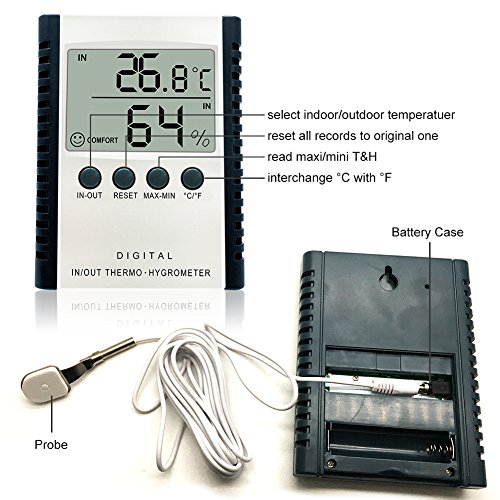 Package Included: ★ 1 x Humidity Monitor Thermometer Monitor ★ 1*1.5V AAA Battery ★ 1 x Sensor probe (2M)