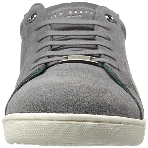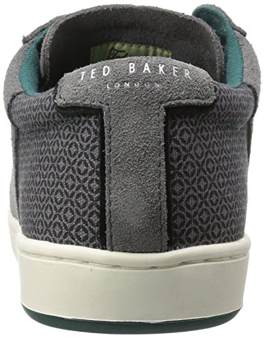 Studio : Ted Baker Publisher : Ted Baker Binding : Apparel Product Description Cupsole trainer in suede with feature printed textile heel. Branding highlight emboss and brushed metal lace covering add detail to this contemporary look. Sole features geometric repeat print and second color in the heel. Two colored lace options are offered. 0