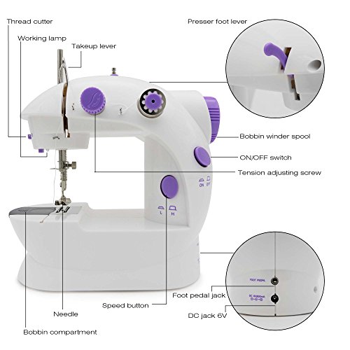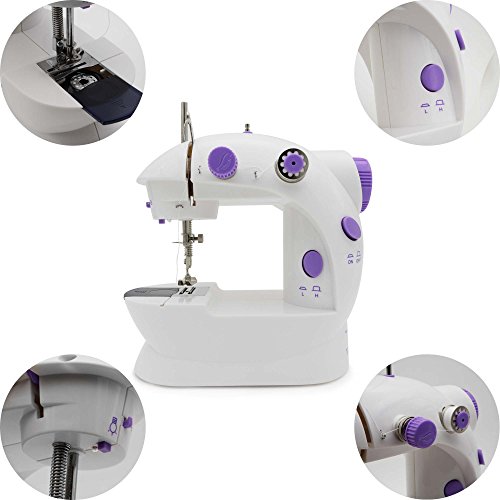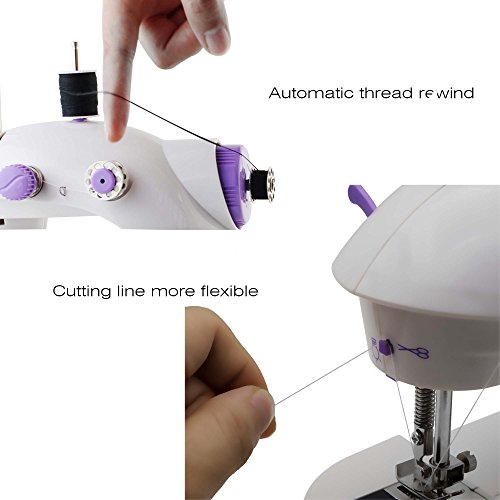 Portable Sewing, Amado Portable Sewing Double Speed Mini Sewing Machine White and Purple Design
