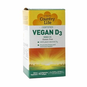 -. Binding : Health and Beauty -. Brand : Country Life -. EAN : 0015794058212 -. Feature : Country Life Vegan D3 Gluten Free Description 5000 IU Certified Vegan 100% Plant-Derived D3 Promotes Bone and Immune Health -. IsAdultProduct : 0 -. Label : COUNTRY LIFE VITAMINS -. Manufacturer : COUNTRY LIFE VITAMINS -. MPN : 015794058212 -. PackageQuantity : 1 -. PartNumber : 015794058212 -. ProductGroup : Beauty -. ProductTypeName : HEALTH_PERSONAL_CARE -. Publisher : COUNTRY LIFE VITAMINS -. Size : 60 Vegetarian Softgels -. Studio : COUNTRY LIFE VITAMINS -. Title : Country Life - Vegan D3 5000 IU - 60 Vegetarian Softgels -. UPC : 015794058212