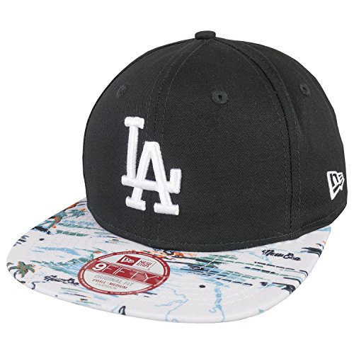 Binding : Apparel Product Description Featuring New Era's Hawaiian inspired vintage style Offshore design on the visor, the Offshore Visor cap has a black crown with embroidered Los Angeles Dodgers badge and New Era Flag logo. The inner of the Offshore Visor has New Era 9FIFTY branded tape protecting the panel seams and features the New Era and MLB patches sewn to the head band. Being a genuine New Era 9FIFTY cap the Offshore Visor 9FIFTY comes complete with the unmistakable red and white 9FIFTY sizing patch on the peak. About the New Era 9FIFTY The 9FIFTY is New Era's signature 6 panel snapback cap featuring a flat visor that has the ability to curve. The 9FIFTY cap is open backed featuring an adjustable snapback closure. The 9FIFTY is available in two sizes of small-medium (54.9 cm - 59.9 cm) and medium-large (56.8 cm - 61.5 cm). The New Era 9FIFTY Offshore Visor LA Dodgers Snapback Cap is part of our huge range of New Era caps, apparel and accessories. 0