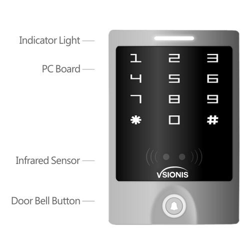 -. Title : Vsionis VIS-3000 Access Control Weather Proof Metal Housing Anti Vandal and Anti Rust Digital Touch Keypad and Reader Standalone no Software 125khz 2000 Users with Doorbell