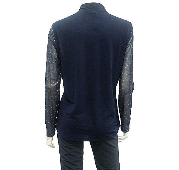 청량감이 좋은 소재에 전판 프린트를 개발하여 타소재를 배색함으로 디자인 포인트를 준 티셔츠 , 팔부분 매쉬를 사용하여 한층 더 시원하게 착용