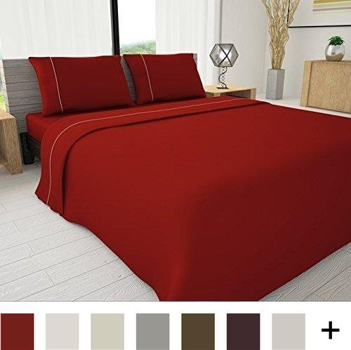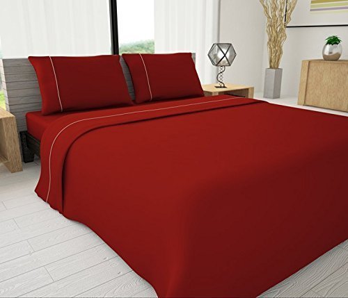 Novelty Bedding 625 Thread Count Egyptian Cotton Blend Solid Sheet set with Piping Accents,Twin, Red