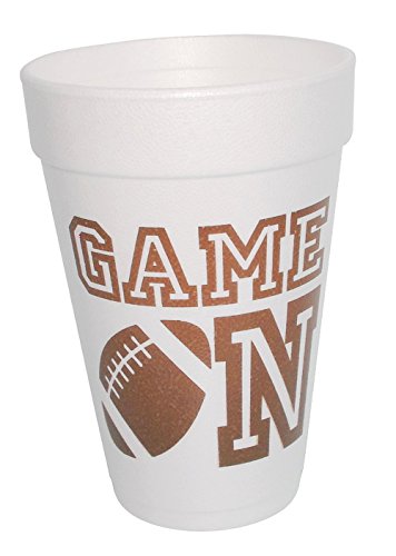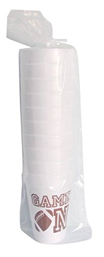 Game On Football Styrofoam Cups 10 (16 Oz.) Pack - White with Chocolate Lettering Front & Back Printed
