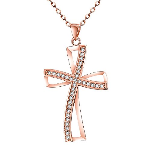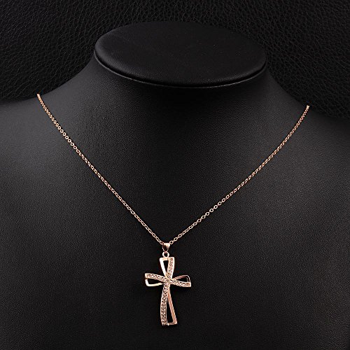 -. Title : Fashion Jewelry Cross Pendant Necklace Cubic Zirconia Eelegance Girl Rose Gold Plated