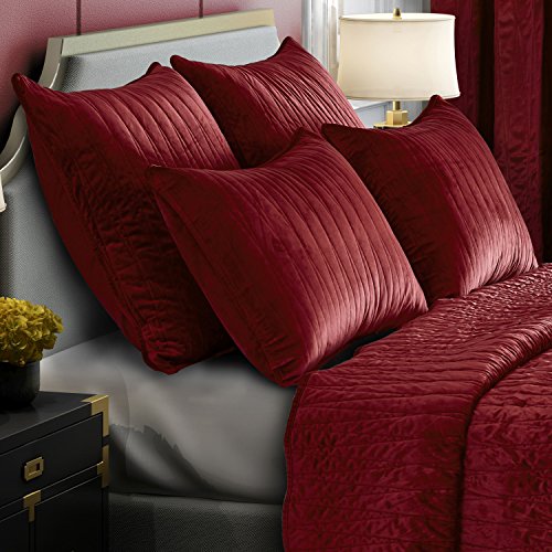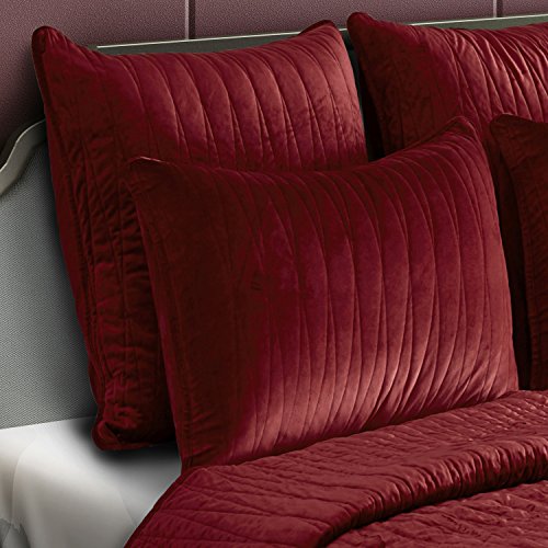 Brielle Premium Heavy Velvet Sham Set with Cotton Backing, King, Burgundy