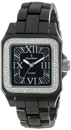 Peugeot Women's PS4897BK Swiss Ceramic Swarovski Crystal Black Dial Watch