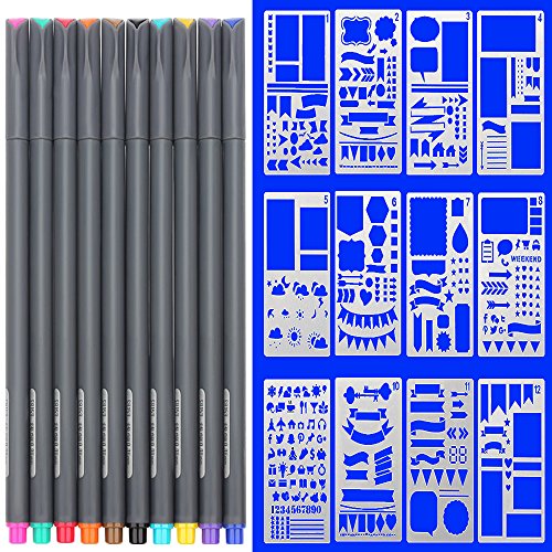 - ★Perfect accessories and kits for bullet journal: 12 style bullet journal stencils & 10 Fineliner Pen, are set in one pack