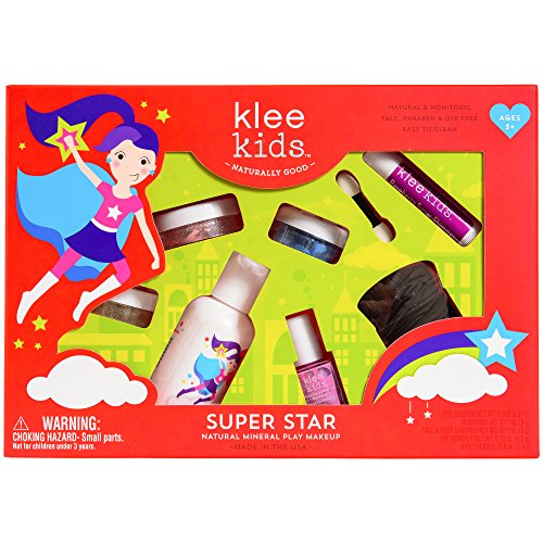 Pretend play can now be worry-free with Klee Kids Natural Mineral Play Makeup Collection, formulated with natural minerals and other wholesome, non-toxic ingredients. NO harsh chemicals. NO talc. NO artificial dyes. NO parabens. Gluten Free. Now, your little girl can stay out of your makeup bag and have her very own safe and natural makeup. The Queen Fairy kit contains Empress Violet eyeshadow, Majestic Sparkles blush, Silver Reign body shimmer, Pink Lemonade certified organic lip shimmer, Royal Primrose water-based nail polish, Dazzling Body Lotion with organic argan oil and honey. Klee products are made lovingly in the USA.Feature