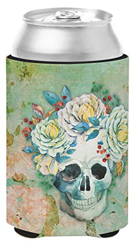 Caroline's Treasures Day of The Dead Skull with Flowers Can or Bottle Hugger, Can Hugger, Multicolor