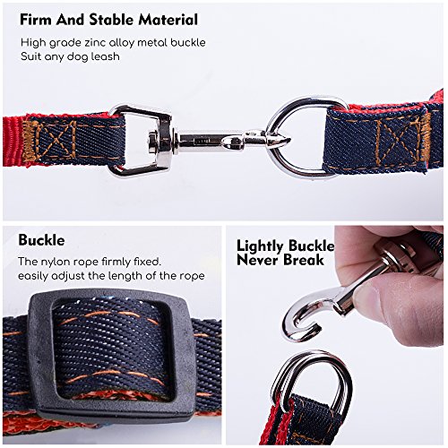 Features: Double layers that pull against the largest dogs. Fashion jean element attracts passenger's attention. Soft texture with no hard edges offers your dog comfortable experience. 6 feet long leash gives you absolute control to lead your dog. Beautiful color enhances visibility. 0