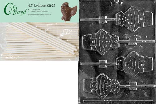 Cybrtrayd 45St25-T015 Pilgrim Lolly Boy Thanksgiving Chocolate Candy Mold with 25-Pack 4.5-Inch Lollipop Sticks