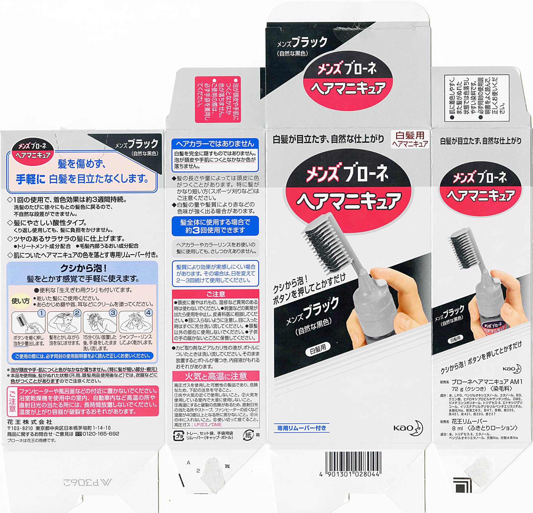 Kao Men s Blaune | Hair Manicure | Black w/ Integrated Comb for Gray Hair (Japan Import)