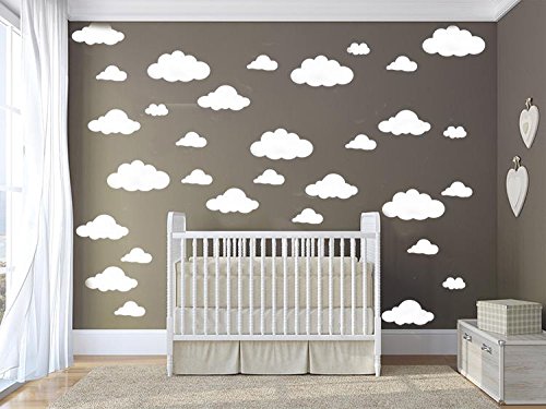 31 pcs Mix Size 4-10 inch Clouds Wall Decal Sticker For Kids Bedroom Decor -DIY Home Decor Vinyl Clouds Mural Baby Nursery Room Wallpaper YYU-14 (White)