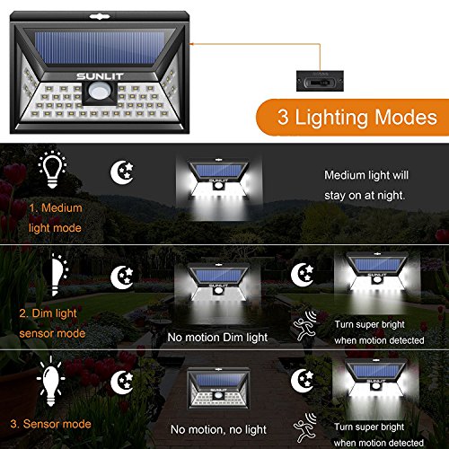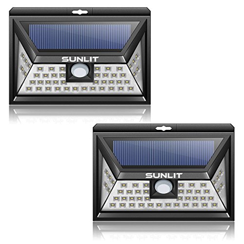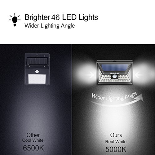 Solar Light Outdoor SUNLIT 46 LED | 5000K White super | Wall mounting, Motion Sensor, Waterproof, Security Lights for Pathway, Porch, Garden, Yard | 2 Pack