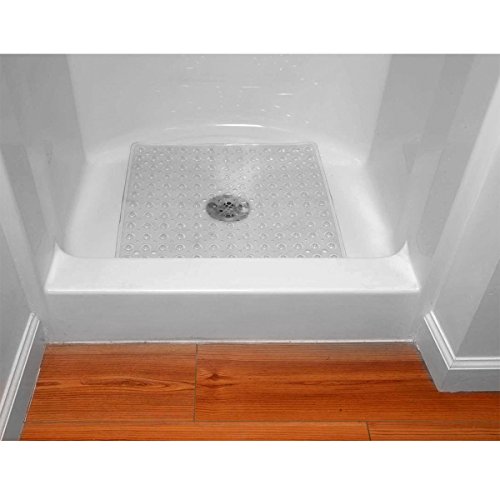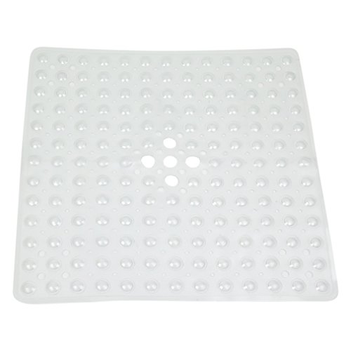 This high quality vinyl square shower mat is comfortable on your feet and adheres to the shower floor.