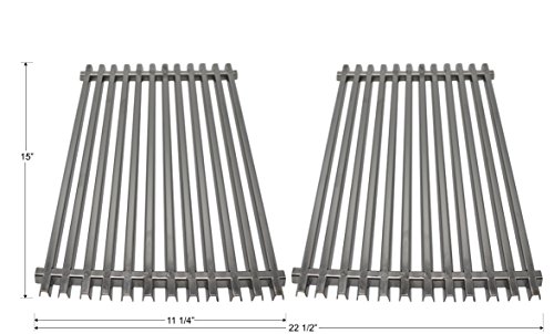 - Stainless steel cooking grate 15" X 11 1/4" Each, overall dimensions 15" X 22 1/2" (2-pack).