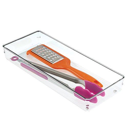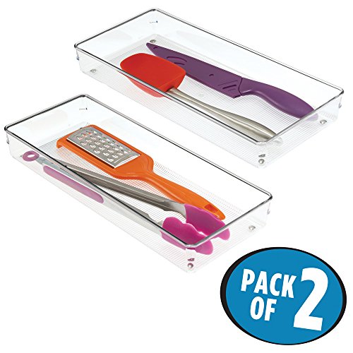 mDesign Kitchen Drawer Organizer for Silverware, Spatulas, Gadgets - Pack of 2, 6" x 15" x 2", Clear