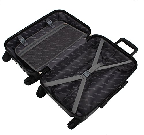 Steve Madden Luggage Hard Side Collection is the best fit for the fashionable connoisseurs looking to add style to their travels. The body is made from virgin ABS PC material that is designed to provide your belonging with maximum protection. It uses an 8 wheels spinner system compared to the conventional 4 wheels on most suitcases, to provide greater stability and durability to make sure your travels are as smooth as possible. The aircraft grade aluminum handles are extra lightweight while maintaining a high standard for shock absorption. The dimensions with wheels and handles: Carry-on: 21.8 X 13.5 X 9 inches Medium: 29 X 17.5 X 11.3 inches Large: 32.1 X 20.6 X 12.2 inches The dimensions without wheels and handle: Carry-on: 19.3 X 13.2 X 9 inches Medium: 27 X 17.5 X 11.3 inches Large: 31 X 20 X 12 inches The carry-on has been extensively tested to fit the overhead cabin requirements for most airlines Internal storage capacity Carry-on: 29 Liters Medium: 80 Liters Large: 100 Liters Approximate weight of the luggage Carry-on: 7.1 lbs Medium: 9 lbs Large: 11 lbs This luggage is covered by a 5 year manufacturer's warranty. 0 |
