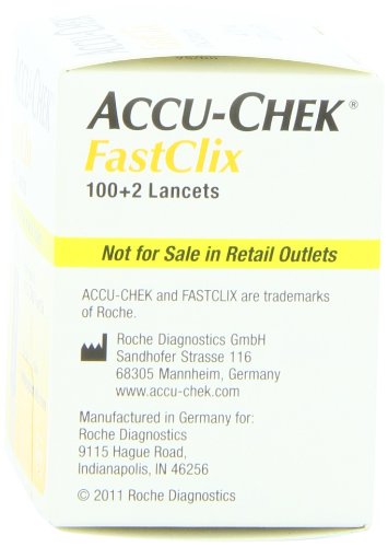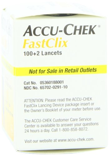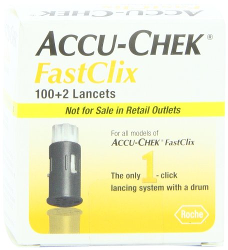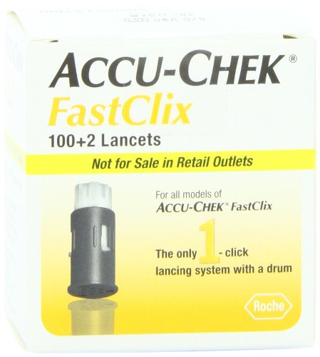 Lancets for use only with accu chek fastclix lancing device. Includes 17 preloaded drums of 6 lancets per drum. 100+2 lancets in a box. 17 drums of 6 lancets.