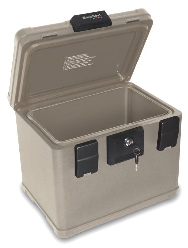 -. Binding : Misc. -. Brand : FireKing -. Feature : Designed to meet the security needs of today's consumer / Protects CDs/DVDs, flash drives, portable hard drives and other valuable items from fire and water damage / Holds #10 Envelopes and folded documents / Dual compression latches and handle / Waterproof for two hours -. Label : FireKing Security Group -. Manufacturer : FireKing Security Group -. PackageQuantity : 1 -. ProductGroup : BISS Basic -. ProductTypeName : LAB_SUPPLY -. Publisher : FireKing Security Group -. Studio : FireKing Security Group -. Title : SureSeal by FireKing SS102 Fireproof Waterproof Chest, 0.15 CU FT Storage Capacity, 7.3 x 9.8 x 12.2 Inches