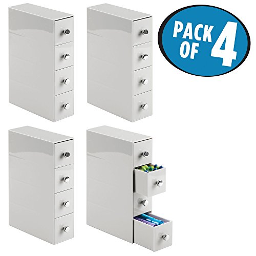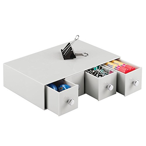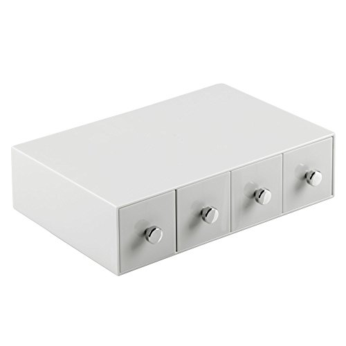 mDesign Flip Office Four Drawer Storage Organizer for Pens, Highlighters, Paperclips - Pack of 4, Light Gray