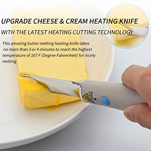Innovative Heating Technology: This amazing heating knife takes no more than 3 or 4 minutes to reach the highest temperature of 167℉(degrees Fahrenheit) to cut/melt/spread cheese or butter nicely;