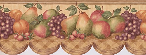 -. Title : Fruit Basket Apple Grape Peach Wallpaper Border for Kitchen Bathroom Living Room, Roll 15' x 9''