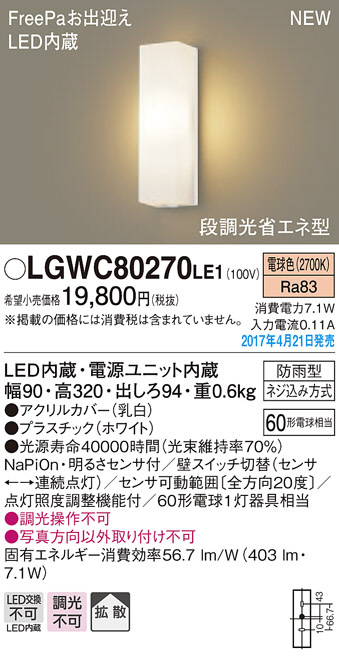 ●材質/色/仕上げ:アクリルカバー(乳白)・プラスチック(ホワイト)