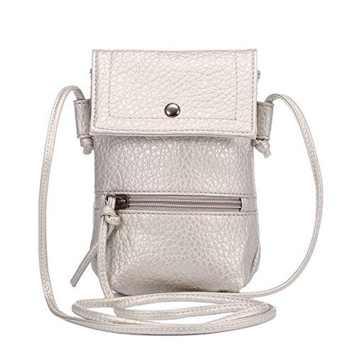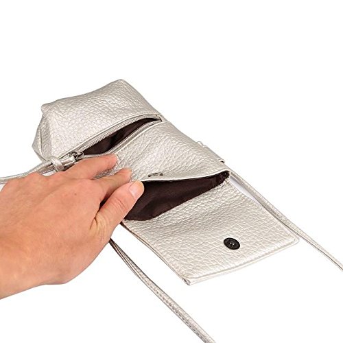 WaitingU Universal Crossbody Cell Phone Bag Multipurpose Soft PU Leather Carrying Cases Wallet Purse Shoulder Bag for iPhone 6/6S Plus 6/6S Samsung Galaxy Note Series Phones Under 6.2 inchs -Silver