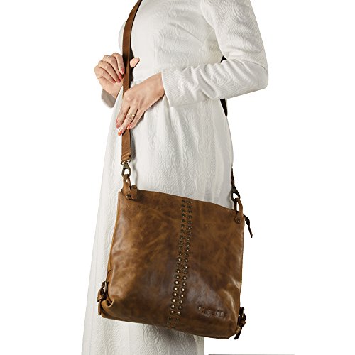 Finelaer Women Leather Tote Hobo Shoulder Handbag Purse Organizer with Studded Rivet Brown