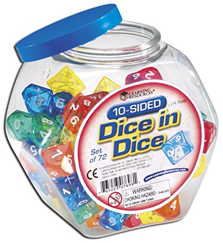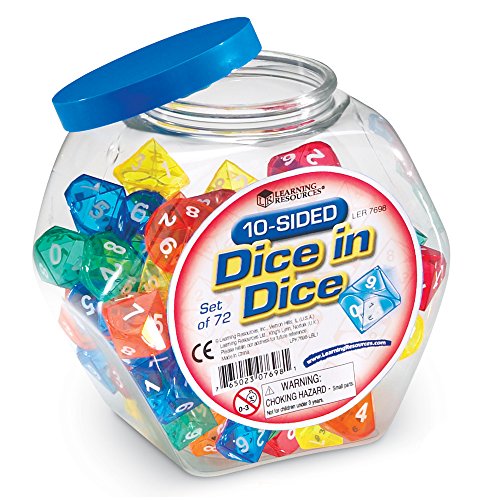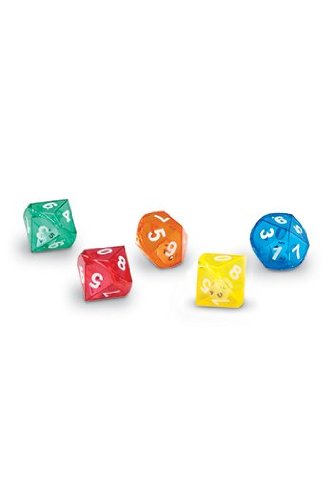 ReleaseDate : 2008-01-01 Studio : Learning Resources, Inc Publisher : Learning Resources, Inc Binding : Office Product Product Description Double-decahedra dice help teach statistics, predictions and outcomes, plus more advanced probability concepts. These versatile, colorful manipulatives can bring a fun game-like element to hands-on number and operations activities, too. Includes sturdy hexagonal tub for quick clean-up and easy storage. 0