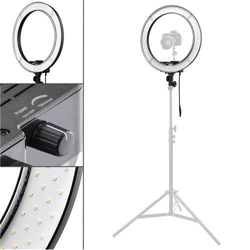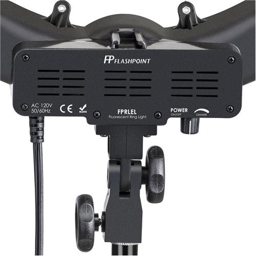 Flashpoint 19" AC Powered 600W 5500K Fluorescent Ring Light Take the cool continuous power of fluorescent light, blend it with the soft, shadowless caress of a ring light, add a 19" diameter of 5500K at 600w and you have the formula for great results for video and still photography when the subject demands a beauty solution. The Flashpoint 19" AC Powered 600W 5500K Fluorescent Light Ring is a lightweight, portable ring of light that delivers all of the above. A control allows you to vary the light intensity for precise balancing with available fluorescent lighting and finding the right touch without repositioning. This light ring uses 80W of power which produces relatively low heat, allowing for closer subject lighting and keeps the model's comfort and make-up just right. The ring fits atop a standard light stand and can be tilted to any angle. The light ring produces true beauty quality, and it is a favorite among fashion, children photographers and journalists, creating signature catchlights in the eyes. Macro photographer prefer it, too, for the soft envelope of illumination that seems to fill every hard to reach place. The radiance is soft and virtually free of shadows, but softer effects can be reached by the separately available diffusion 'sock'. The optional snap on Flashpoint 19" filters set (FPRLX001) includes diffusion and color gels for balancing with tungsten or adding warmth to lighting. Speaking of options, while suggested foFeature