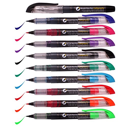 Xeno Calligraphy Color Brush Pen, Fude pen, Narrow Tip, Kanji China Japan (9 Color Pack)
