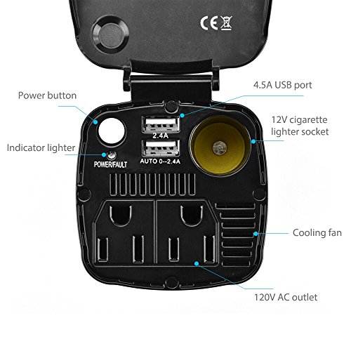 BESTEK® Advantage: Amazon's #1 power inverter brand.Provides 200 watts continuous DC to AC power and 400 watts of instantaneous power with 2 AC outlets and 2 USB charging ports, 12V cigarette lighter socket