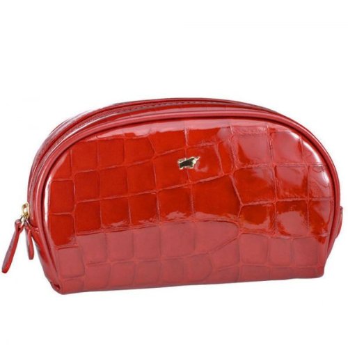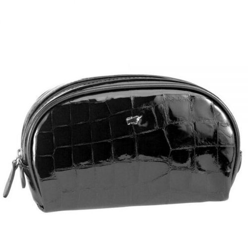 -. Title : Braun Büffel Glanzkroko Kosmetiketui Leder 16,5 cm