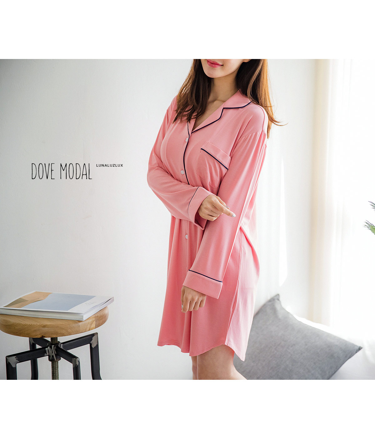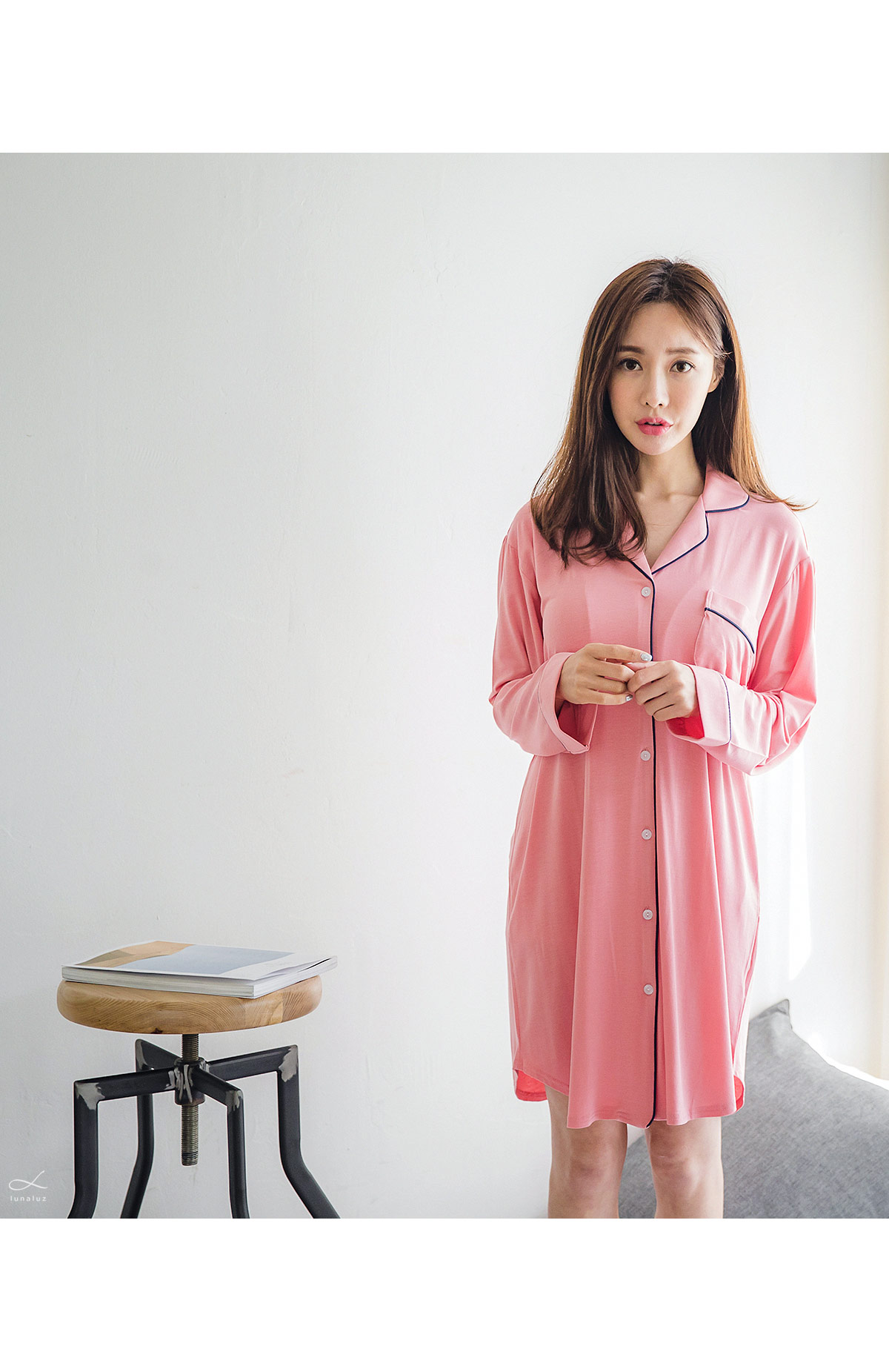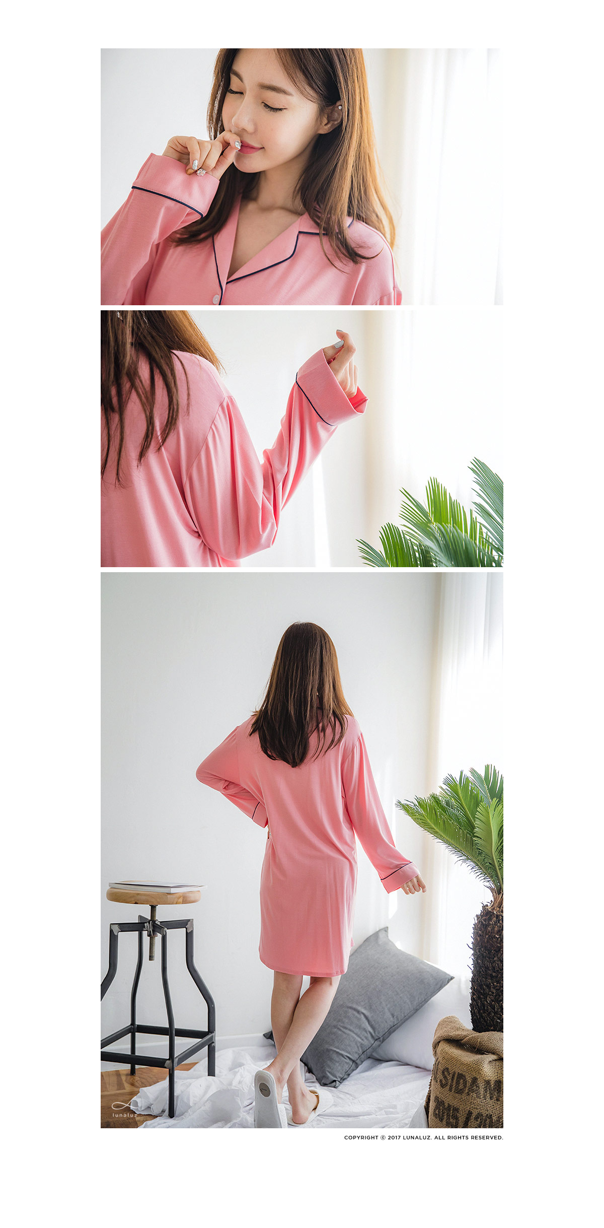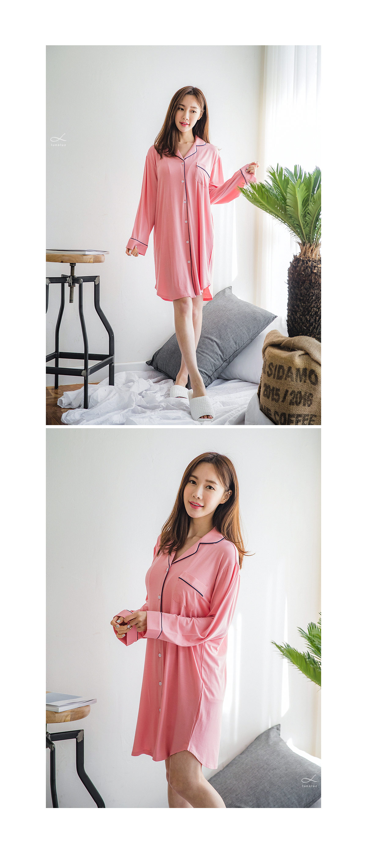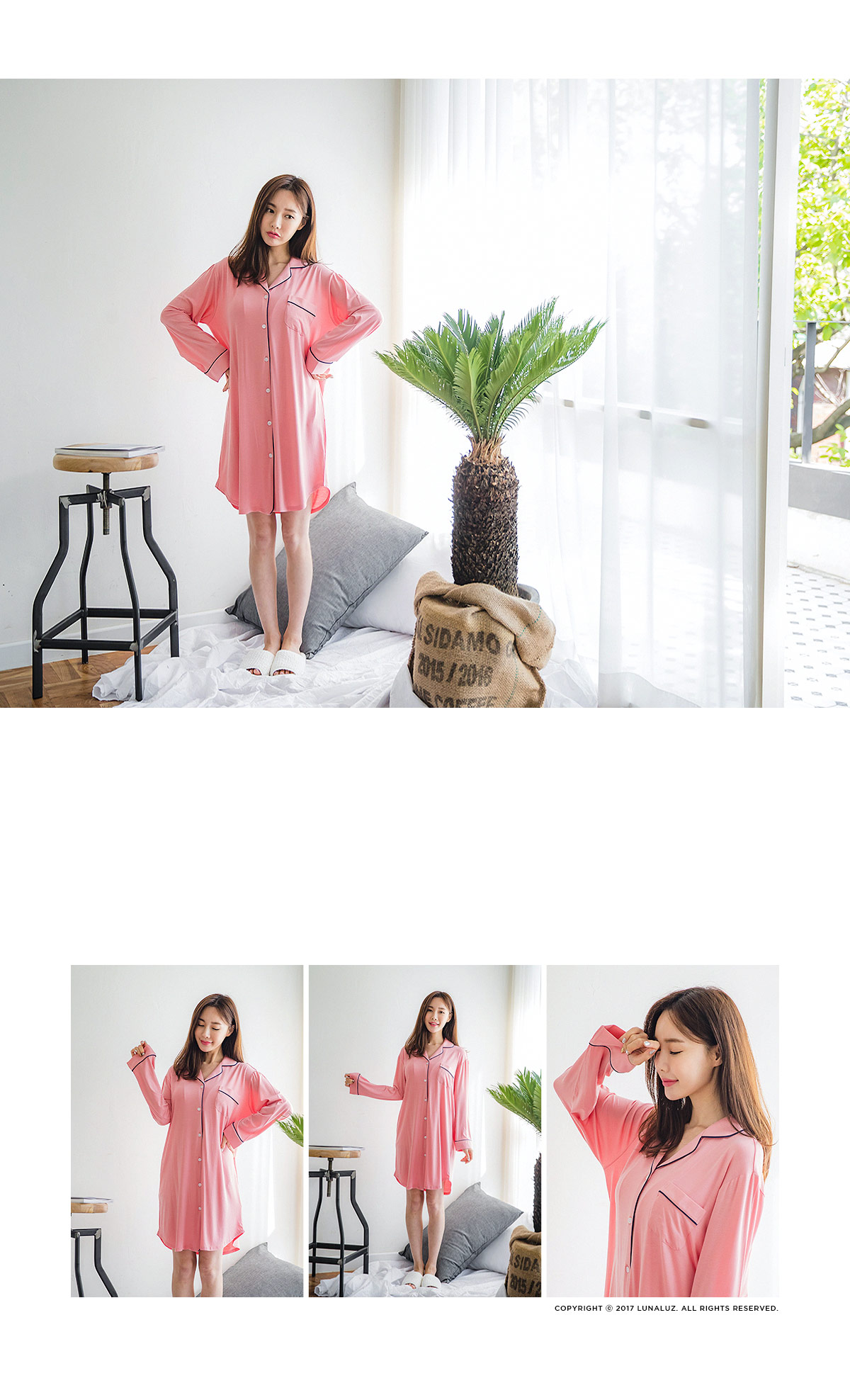 손으로 한 번 쓸어만 봐도 촉촉하고 윤기 있는 터칭감에 반할 수 밖에 없는 프리미엄 모달 잠옷이에요 :) 레드 와인 컬러로 얼굴 빛이 한 층 더 생기 있어 보이도록 연출해줍니다. 반품율 0%, 만족도 100% 인 만큼 고급스러운 소재와 깔끔한 디자인에서 구매율이 정말 높은 잠옷이랍니다. 피부가 민감하신 분들에게 적극 추천해드리고 싶은 파자마 세트입니다. 탄탄하고 쿨한 텍스쳐와 쫀득한 텐션까지 가진 잠옷입니다. 밤나무에서 추출한 천연 섬유로 일반 면소재보다 강하고 우수한 안정성을 가진 패브릭이에요:) 백화점에서 구입하시면 정말 고가의 잠옷입니다. 가정에서 물세탁까지 가능한 소재로 소재의 내구성, 퀄리티에서 꼭!!! 구입하셨음 좋겠어요:) 컬러는 세련된 레드와인, 깔끔한 네이비, 여성스러운 무드의 로즈핑크, 매력적인 퍼플 총 4가지로 제작했습니다. 모든 색감이 예뻐 어떤 컬러를 선택하셔도 꼭 마음에 드실 거에요.^^ DETAIL 포켓 카라 스타일의 파자마 디자인으로 카라의 끝 부분과 클로징부분 마감과 손목과 팬츠 하단에 파이핑을 둘러 포인트를 주었습니다. 원피스의 하단은 둥글게 제작해 더 스타일리쉬해 보입니다. 소재가 신축성이 굉장히 좋아 파이핑 봉제 작업에서도 까다로운 공정이 들어간 잠옷인데요. 흐늘거리는 소재로 안에 심지를 넣어 작업하여 옷의 태를 예쁘게 살려주었습니다. 몸에 감기면서 편안한 원피스잠옷을 꼭 느껴 보셨음 좋겠어요.^^ 한 번 쟁여 놓으면 게속 해서 손이 갈 잠옷으로 옷걸이에 걸어서 보관하셔도 멋스러움에 반하실 거 랍니다. 소재, 컬러, 디자인까지 세심하게 작업한 잠옷으로 강력 추천합니다. 선물은 물론이고 개인 소장으로도 꼭! 구매하셨음 좋겠어요. 100%국내 제작으로 소재, 디자인, 봉제의 퀄리티가 높습니다. SIZE 44반size~66반size까지 착용 가능한 free사이즈입니다.