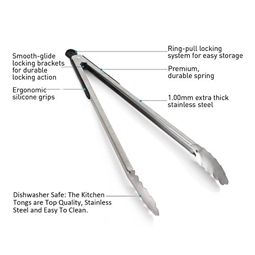 - ✔ HIGH QUALITY GUARANTEE: Professional chefs, kitchen tongs are constructed from top quality brushed stainless steel