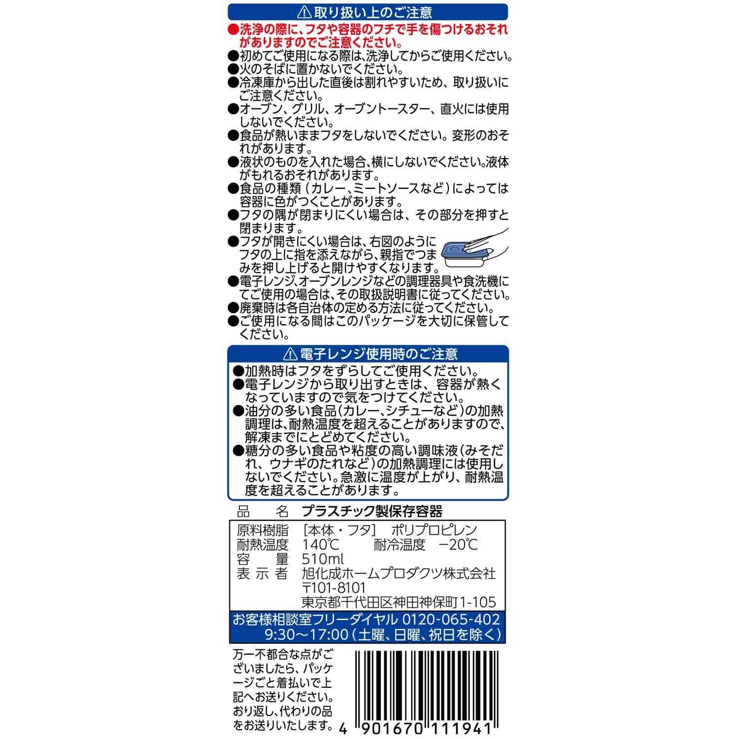 ● When removing from a microwave oven, please be careful as the container is hot.