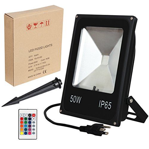 T-SUNRISE 50W RGB LED Flood Light,16 Colors 4 Modes with US 3-Plug , Color Changing Lights With Remote Control, Waterproof IP65 LED Security Light, Flood Lamp for Outdoor, Garden, Yard, Party
