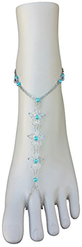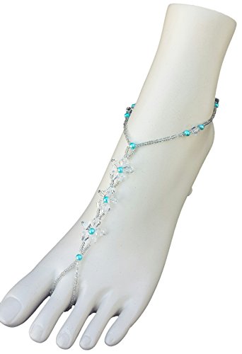 -. Title : Wedding Barefoot Sandals Something Blue Crystal Flowers with Pearl Accents