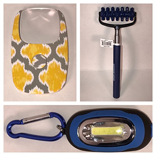 - Also includes: Clarity OptiCard Pocket Illuminated Magnifier with a Push Button and Bright LED Light (Assorted Colors & Designs), Bright All-Purpose Magnetic Mini Light with Carabiner Clip (Assorted Colors), High Roller Massager that Extends to 18" ( Assorted Colors), A Pack of 6 Fun Size M&M's, 1.5 oz Ritz Bits Cheese Cracker Sandwiches, and 1.8 oz Combos Cheddar Cheese Pretzel Snacks